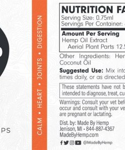Made By Hemp: CBD Tincture for Dogs contains less than 0.3% of THC and is non-psychoactive, meaning it cannot get your dog “high”.