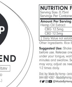 By following the above instructions, you will get around 40 servings in total from the bottle. The Made By Hemp CBG Blend tincture contains 12.5mg of CBG and 12.5mg of CBD per serving.